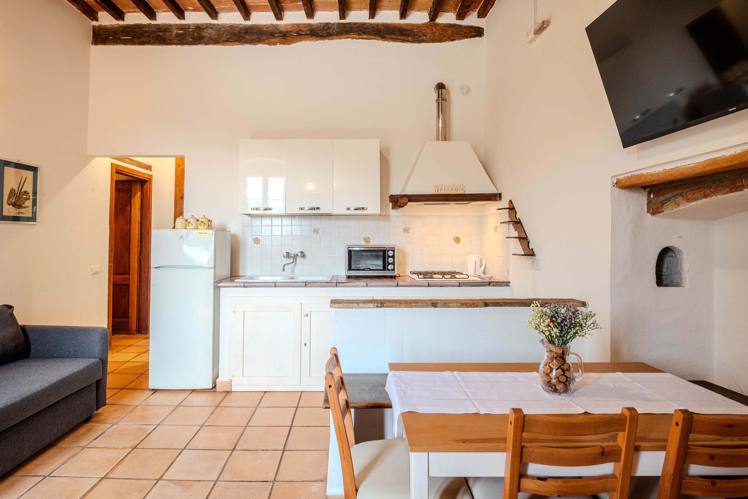 Spazioso appartamento, ideale da vivere in famiglia o in coppia, dispone di tutti i servizi per vivere un’esperienza imbattibile nel cuore verde d’Italia. C’è una bella vista sugli ulivi che circondano la piscina, ha una capacità di 5 persone ed è completamente attrezzata. La casa medievale del 1200 dispone di piacevoli spazi comuni, salone, piscina, barbecue, area giochi all’aperto, per il divertimento di tutti gli ospiti. Lo spuntino è facoltativo.